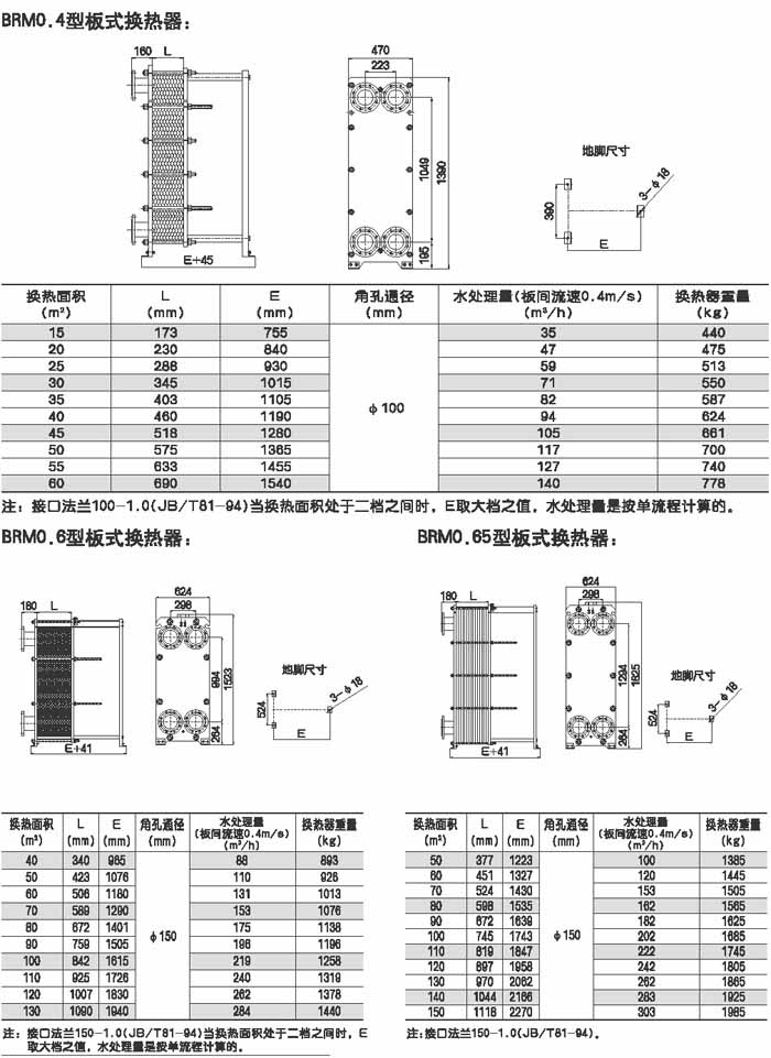 目前我公司生產(chǎn)的板式換熱器主要有BR型、BRB型(BRB型可簡稱為BB型)和BRV型。