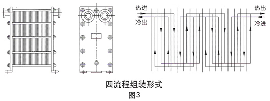 當(dāng)兩種介質(zhì)的流量不同且大致為2:1且不易裝配成雙流程時,可選擇該類型的換熱器。它適用于小區(qū)集中供熱,一般一次網(wǎng)的熱水流量較小,二次網(wǎng)用戶取暖供水的流量較大的場合。